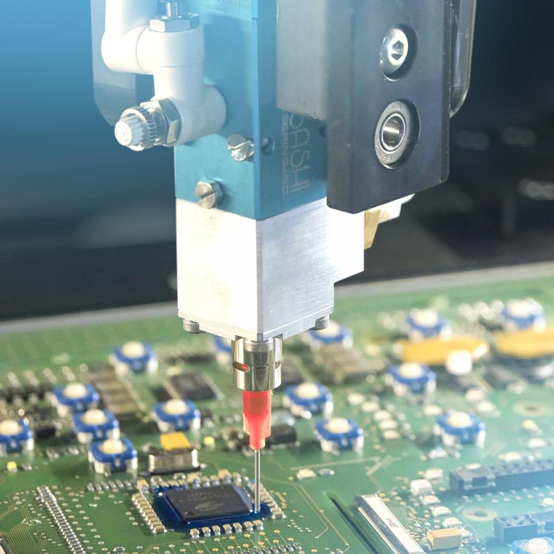 Polymelt uses alkyd and acrylic coatings. They stand out by being easy to use for a wide range of different applications. They have proven their worth for coating electronic components. The printed circuit boards are coated with a wafer-thin polymer film to protect them from environmental influences. Individual components can be given specific treatment to protect them from moisture, dust, chemicals or extreme temperatures.